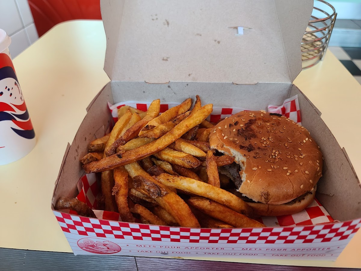 This place shines if you’re after generous, straightforward comfort food without the fuss—think classic Québécois staples done well. Their poutine portions are notably large and loaded with cheese and gravy, making it a solid pick for a hearty snack or casual meal. The burgers, especially the “Rétro Burger,” come juicy and flavorful, pairing well with fries that stand out thanks to a crisp, likely double-fried texture reminiscent of traditional casse-croûtes. Milkshakes, particularly the chocolate, add a thick, indulgent finish.